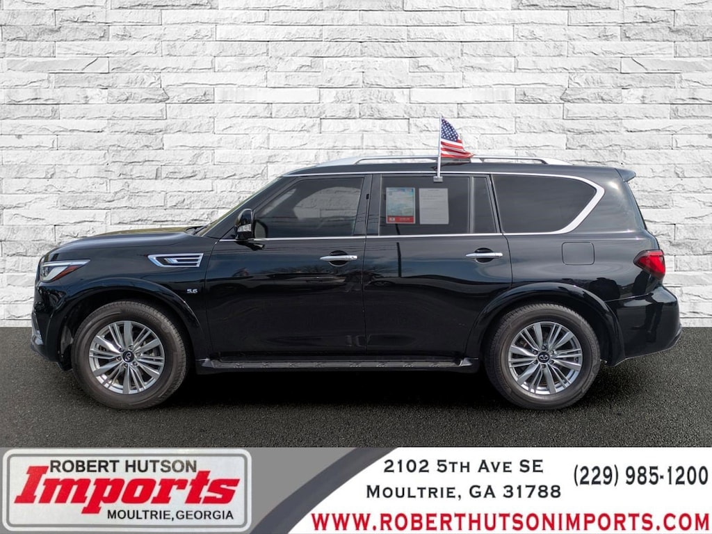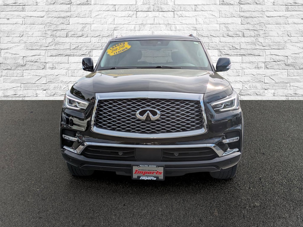 Recent Arrival! Black Obsidian 2020 INFINITI QX80 LUXE 5.6L V8 7-Speed Automatic RWD 13 Speakers, Air Conditioning, AM/FM radio: SiriusXM, Apple CarPlay/Android Auto, Auto High-beam Headlights, Auto tilt-away steering wheel, Auto-dimming door mirrors, Auto-dimming Rear-View mirror, Auto-leveling suspension, Automatic temperature control, Blind Spot Intervention (BSI), Blind Spot Warning, Brake assist, Bumpers: body-color, CD player, Delay-off headlights, DVD-Audio, Front Bucket Seats, Front Center Armrest, Front dual zone A/C, Front fog lights, Fully automatic headlights, Garage door transmitter: HomeLink, Heated door mirrors, Heated Front Bucket Seats, Heated front seats, Heated steering wheel, Intelligent Cruise Control, Lane Departure Prevention (LDP), Leather Shift Knob, Leather steering wheel, Leather-Appointed Seats, Memory seat, Navigation system: INFINITI InTouch Navigation, Outside temperature display, Overhead console, Panic alarm, Power door mirrors, Power driver seat, Power Liftgate, Power moonroof, Power passenger seat, Power windows, ProASSIST Package, Radio data system, Radio: AM/FM/HD w/Single In-Dash CD Player & MP3, Rain sensing wipers, Rear air conditioning, Rear audio controls, Rear window defroster, Rear window wiper, Reclining 3rd row seat, Remote keyless entry, Security system, Smart Rear View Mirror, Steering wheel memory, Steering wheel mounted audio controls, Telescoping steering wheel, Tilt steering wheel, Turn signal indicator mirrors, Variably intermittent wipers, Wheels: 20" x 8.0" Aluminum-Alloy.